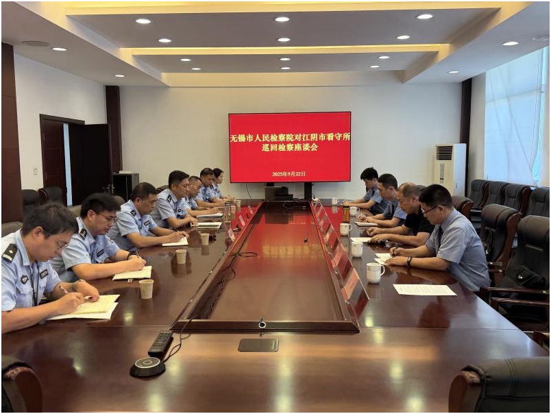 9月22日下午,无锡市人民检察院及我院工作人员组成看守所巡回检察组(第一组)进驻江阴市看守所,召开巡回检察座谈会,并邀请人民监督员参会。