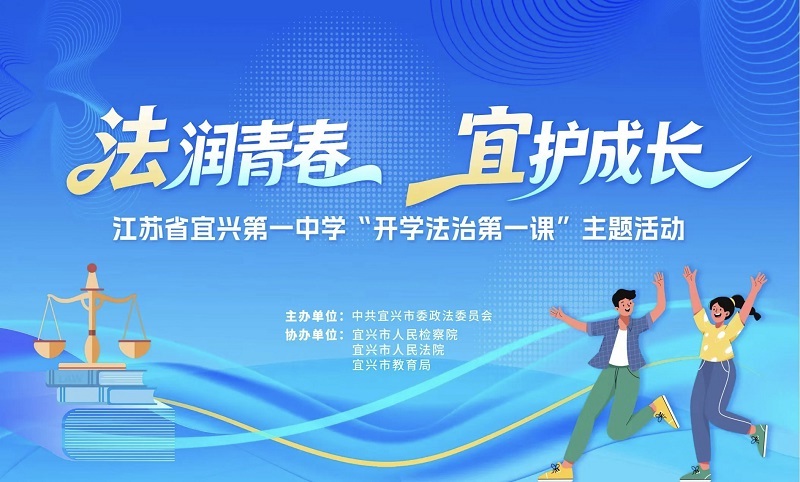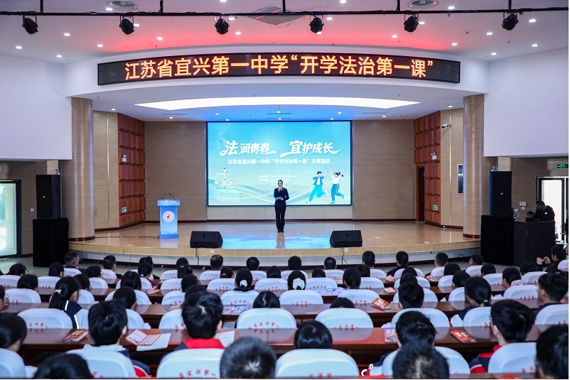 为深入贯彻落实习近平法治思想,切实加强青少年法治教育,引导全市中小学生树立正确法治观念,提升法律意识和自我保护能力,4月15日,“法润青春 宜护成长 开学法治第一课”主题活动在江苏省宜兴第一中学举办。